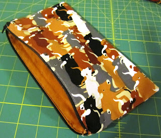Making 12 zippered pouches was great practice with using zippers. Every one of them is lined with a coordinated fabric, so it used up some small cuts of fabric. And since they're meant for kids, I was able to finish off some novelty fabrics that I had no other plans for.
